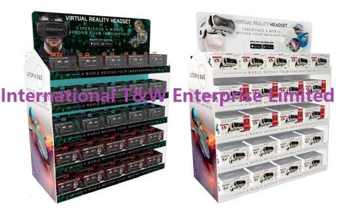 Double-face Wal-mart 1/2 Karton Pallet Display Dengan 5 rak Pra-pengisian dengan headset 4D VR