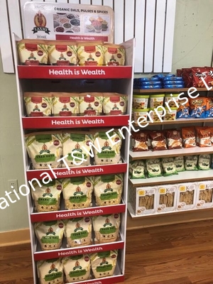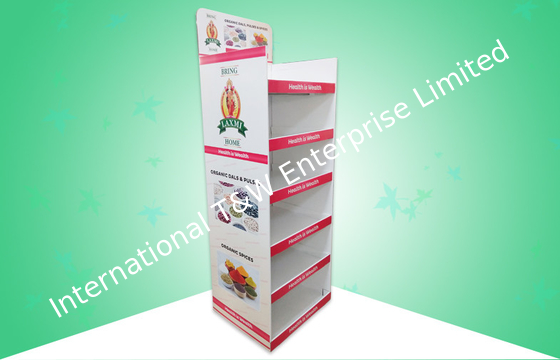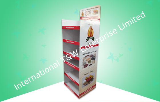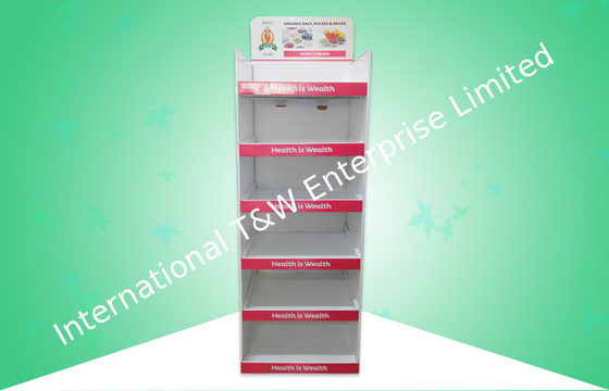 Robust 6 - shelf Cardboard Floor Display Stands / Corrugated Paper Display for Snacks /Foods With Supporting Bars