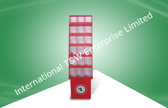 Red Cardboard Display Cardboard Stand With 18 Pockets For Promoting DVDs